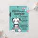 Celebra una celebración mágica con esta adorable Panda Unicorn sobre un arcoiris. El fondo es un bonito verde verde azulado/azul, con toques florales rosas y azules. Personalice los datos de cualquier fiesta.