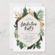 Tarjeta de invitación/invitación para graduación de hojas tropicales pintadas. Texto de guión pintado a mano.