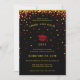Invitación a graduación de Maroon con confeti de purpurina de oro y marrón y un gorro de graduación. ¡Personaliza el texto para tu propia ceremonia de graduación! Nota: El purpurina de oro es un efecto impreso, no se usará ningún purpurina real para hacer estas invitaciones.