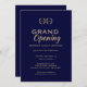 Eleva tu gran celebración inaugural con nuestra invitación a la inauguración de la Marina Blue y Gold Grand. Con un diseño sencillo y elegante con tipografía dorada clásica, un logotipo de plantilla de personalizable y detalles del evento con un elegante fondo azul marino, esta invitación marca el tono perfecto para el gran día de su empresa. Simplemente personaliza con el nombre de tu empresa, los detalles de los eventos y la información de RSVP para crear una invitación memorable y sofisticada. Da una impresión duradera con este diseño atemporal.