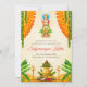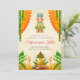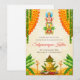 Esta tarjeta digital de invitación DIY Satyanarayan, una invitación de fusión con elegancia tradicional, se complementa con flores y hojas, perfecta para su invitación de pooja india.