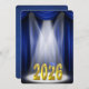Invitación a la ceremonia de inauguración de la clase de 2025 en azul y oro en el escenario con focos destacados.
