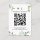 Esta tarjeta de gabinete Boda de Verdor cuenta con un diseño limpio en blanco y negro con vegetación de moda y un escaneado código QR. Perfecto para parejas modernas que comparten sitios web bodas, enlaces RSVP o detalles de eventos en un formato elegante y mínimo.