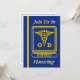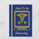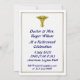 Esta invitación azul y dorada está decorada en la parte delantera con el escudo caduceus óptico retirado. Puede personalizar esta tarjeta colocando su información en los cuadros proporcionados.