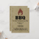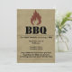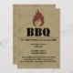 La invitación de verano a la barbacoa incluye un fondo de papel duro con una llama encima. Las letras "BBQ" están en gruesas letras en negrita y son completamente personalizables. ¡Edita todo tu texto!