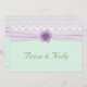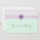 Suaves colores pastel de blanco, lavanda y verde menta con un delicado motivo de encaje. Incluye una cinta de lavanda y una elegante flor de lavanda. Perfecto para un boda de primavera o verano.