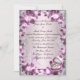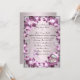 flores moradas de bonito sobre un fondo morado. Esta hermosa invitación a la boda es una manera moderna y elegante de invitar a la familia y amigos a su boda. Personalice la tarjeta cambiando el texto en los campos proporcionados delante y atrás. Puede cambiar el estilo de fuente, el tamaño y el color, así como el tipo y estilo de papel.
