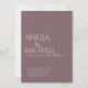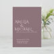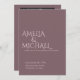 Minimalista y moderna invitación a la boda. Diseño de tipografía simple de moda con un estilo refinado y moderno. Nombres de personalizables, fecha y detalles para una ceremonia moderna y atemporal. Papel romántico perfecto para las parejas que buscan una boda única y elegante, invitan en púrpura pozo y rosa rubor.