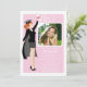 Comience su clase de celebración de la fiesta de graduación 2014 directamente con nuestra invitación a la fiesta de graduación de fotos de chica de grado de moda. Nuestra invitación para graduarse chica incluye a un chica graduado con una gorra negra y un vestido con un diploma y está en un fondo rosa bonito. Gire nuestra elegante invitación formal de graduación para ver un fondo de rayas audaces para un toque especial extra. Invitación moderna a graduarse para un grado de secundaria o universitario. Fácil de personalizar, simplemente rellena tu información de graduación, agrega tu foto y estás listo para ir. Disponible en nuestra tienda con diferentes colores de cabello. Visite nuestra tienda en www.celebrateitgraduations.com para una gran variedad de invitaciones de graduación modernas, formales y modernas.