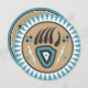 Invitación con un diseño de pata de oso nativo americano en color turquesa y beige.