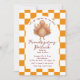 Reúne a sus amigos más cercanos para un banquete con esta alegre invitación de Friendshand. Con una alegre acuarela de pavo sosteniendo un tenedor y un cuchillo, enmarcado por un audaz borde a cuadros de naranja y blanco, este diseño es perfecto para celebrar gratitud, comida y amistad. Ideal para una invitación a la cena de Friendscome, fiesta de Acción de Gracias o una reunión casual de otoño, esta invitación es totalmente personalizable para que puedas añadir tus propios detalles del evento. Celebra la temporada de gracias con esta divertida y festiva invitación Friendscome potluck a tus huéspedes.