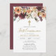 Invite a su huésped con nuestra elegante y moderna invitación floral de Borgoña a la primera comunión con flores de color burdeos. Personalice los detalles del evento con un diseño sencillo y un estilo de letra elegante escrito a mano.