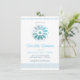 Esta elegante y moderna invitación de 4.5" x 6.25" para niños de la primera comunión sagrada presenta una ventana de rosette estilo cristal y un diseño decorativo complementario azul y verde a lo largo de los bordes superior e inferior de la invitación. El color de fondo y el texto se pueden personalizar para su ocasión religiosa especial.