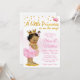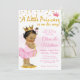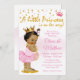 Las invitaciones a la ducha de bebé de la princesa Princesa con una adorable princesa afroamericana bebé con un lindo tutu rosado y una cuerda de perlas en un precioso brillo dorado y un fondo de diamante.