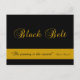 Invite a amigos y familiares a asistir a su prueba de cinturón negro de artes marciales y ver cómo se promociona con este personalizado tarjeta postal para la prueba de la promoción del cinturón negro. La carta es negra con una banda de oro y presenta el inspirador y motivacional proverbio chino "El viaje es la recompensa".