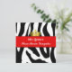 Invitación de cumpleaños de Quinceañera divertida, con una huella de cebra en blanco y negro acentuada con una franja roja y una corona dorada. Gran invitación que a tu chica especial de cumpleaños le encantará. Personalice el texto, para su celebración de 15 años.