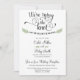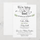 Anuncia a tus amigos y familiares que te casarás en una ceremonia privada y luego invítalos a una celebración de recepción después de la boda / recepción. Personaliza con tu información. Cuenta con la redacción "Estamos atando el nudo" en un delicado guión con hojas verdes dibujadas a mano.