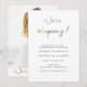 Este elegante anuncio de boda también sirve como invitación a la recepción de boda. La invitación de recepción a doble cara presenta "¡nos estamos escapando!" en letras de lámina dorada falsa y texto que anuncia el próximo matrimonio de los recién casados y los invita a una recepción de boda informal. Personalice con su foto en el reverso.