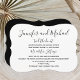 Esta divertida invitación a la recepción de bodas después de la boda presenta una fuente negra alegre para sus nombres seguida de "atamos el nudo" en una invitación de corchete blanco. ¡Puede personalizar dónde se casó seguido de su Sr. y Sra. y luego todos los detalles de su recepción después de la boda! La parte posterior de la invitación es negra para hacer una invitación simple pero elegante después de la boda. Copyright henishouseofpaper