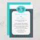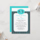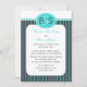 Esta invitación a la recepción de bodas posterior es un diseño muy moderno ya que presenta el monograma actualizado (un monograma de él y ella) en la parte superior. Además, los colores modernos azul de huevo de petirrojo y gris acero se combinan en una hermosa franja. Una impresionante invitación a la recepción de bodas posterior. Copyright henishouseofpaper