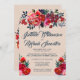 Hermosa manera de hacer saber a tus amigos que ataste el nudo y luego invitarlos a una recepción. El diseño floral de la Moda Boho presenta flores rojas y rosas vibrantes que rodean las flores azul marino. (Son las plumas las que llevan esto de la floral romántica a un elegante diseño bohemio. Este diseño forma parte de la colección de invitaciones Red Floral Boho. Contiene muchos elementos de coordinación, como etiquetas de dirección de retorno, sobres y pegatinas. Si no ves un enlace en esta página, por favor contacta conmigo para uno.