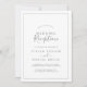 Esta minimalista invitación a la boda plateada es perfecta para un fiesta post-salida sencillo. El moderno diseño romántico presenta una tipografía clásica de color gris plateado y blanco, acompañada de una caligrafía rústica y elegante con un estilo de letra a mano vintage. Personalizable de cualquier color. Mantenga el diseño simple y elegante, tal como está, o lo personaliza añadiendo sus propios gráficos y obras de arte. Las tarjetas RSVP se venden por separado, o puedes agregar información RSVP a la parte posterior de la tarjeta.