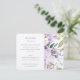 Esta carta de invitación a la recepción desprende un encanto extraordinario, con un impresionante ilustracion lateral de flores de lila y vegetación, que cautivan el encanto de un jardín floreciente. Los tonos lavanda, amatista y sabio crean una agradable armonía visual en el suave fondo blanco. El lado izquierdo de la tarjeta detalla el evento con elegancia en un hermoso guión morado, invitando a los invitados a una noche de cena, baile y alegría. Esta carta es una promesa de alegría y un bello recuerdo para una celebración inolvidable.