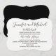 Esta divertida invitación a la recepción después de la boda presenta una fuente negra alegre para sus nombres seguida de "anudaron el nudo" en una invitación de soporte blanca. ¡Puede personalizar dónde se casó seguido de su Sr. y Sra. y luego todos los detalles de su recepción después de la boda! La parte posterior de la invitación es negra para hacer una invitación simple, pero elegante para después de la boda. Copyright henishouseofpaper