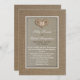 ¿Buscas una recepción después de la boda en arpillera? Aquí está la plantilla de invitación para la recepción después de la boda que has estado buscando. Con una arpillera de color marrón más oscuro en el borde y una arpillera de color marrón más claro en el centro que contiene un corazón con tu monograma. Puedes personalizar este diseño con la fecha y el lugar de tu boda junto con todos los detalles de la celebración de la recepción después de la boda. Una excelente invitación para la recepción después de la boda con monograma. Copyright henishouseofpaper