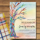 Tarjeta de invitación a la Reunión de Familia de Árboles de Familia. Invite a su familia a su Reunión Familiar con esta elegante invitación. Presenta un árbol familiar con los colores del arco iris sobre un fondo acuático. Personalizar con su apellido y sus datos. Este diseño único es la impresión de un mosaico de árbol de familia hecho de pequeños trozos de vidrio de colores vivos. Porque creamos nuestra propia obra de arte no encontrarás esta imagen exacta de otros diseñadores. Original Mosaico © Michele Davies.