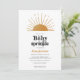 Invitación a Baby Sprinkle con medio sol con rayos. Personalizar con tu información para que la madre lo sea. Haga clic en "hacer clic para ver más personalizar" para cambiar el estilo, tamaño o color de la fuente.