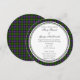 Invitación redonda de bodas de personalizable con temática Boda escocesa utilizando uno de los tartanes escoceses del nombre de MacDonald. La información sobre la invitación a la boda de personalizable se enmarca en el centro de una invitación redonda. Esto es perfecto para bodas de destino, bodas del patrimonio familiar o bodas de temática escocesa. Si quieres que otro escote no aparezca aquí, por favor siéntete libre de enviarme un mensaje. Proporcione el número de referencia de STA para el patrón tartán que desee, de ser posible.