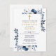 Esta moderna invitación floral floral azul marino a la primera comunión sagrada puede ser personalizada con su información en tipografía elegante. Diseñado por Thisisnotme©