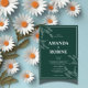 Anuncie su día especial con un estilo atemporal usando esta invitación a la boda Botánica Verde. Diseñada para parejas que valoran la elegancia y la sencillez, esta invitación muestra un mínimo de toques blancos en un rico fondo esmeralda, junto con una tipografía serif limpia que irradia gracia y tradición. Con un texto claro y bien organizado y un marco clásico de doble línea, esta invitación es ideal tanto para eventos formales como para ceremonias contemporáneas en el jardín. Aspectos destacados del diseño: fondo verde profundo con ilustraciones botánicos minimalistas en blanco en cada esquina Fuentes elegantes para un aspecto tradicional y limpio Diseño clásico con marco de borde de doble línea Todos los detalles clave de los bodas mostrados con claridad Ideal para imprimir sobre material mate, lino o reciclado Perfecto para: bodas tradicionales o minimalistas con temática verde o bodas botánicos Parejas que prefieren la elegancia subestimada