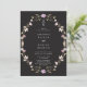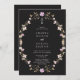 Anuncie a su boda en un estilo atemporal con esta sencilla y elegante invitación a la boda de Flores Silvestres, con suaves flores de acuarela dispuestas en un marco arcaico sobre un fondo negro audaz. Con un estilo serif limpio y detalles botánicos elegantes, este diseño ofrece un aspecto romántico y moderno, perfecto para bodas de verano, noche o jardín. El arco floral y las iniciales de la parte superior lo convierten en algo único, personal y sofisticado, por lo que esta invitación es ideal para parejas que buscan una estética elegante pero mínima. Esta plantilla es totalmente personalizable e impresa en papel premium para reflejar la belleza de su gran día.