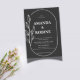 Abran la belleza de la simplicidad con esta invitación a la simple boda blanca y negra Minimalista, diseñada con elegancia subestimada. Un marco de arco limpio rodea los nombres y detalles bodas, acentuados por un solo tallo botánico dibujado a mano que añade un toque suave y orgánico. La paleta clásica en blanco y negro es atemporal y versátil, mientras que la tipografía audaz de serif proporciona claridad y formalidad. Perfecto para las parejas que aman el minimalismo moderno con un toque natural. Características del diseño: fondo negro monocromo con acentos blancos Marco elegante en arco que enlaza el texto clave tallo de hoja dibujado a mano para un elemento natural Tipo de letra serif balanceado con jerarquía elegante Perfecto para: bodas minimalistas modernos Eventos elegantes nocturnos o de corbata negra Lugares botánicos interiores o de inspiración natural