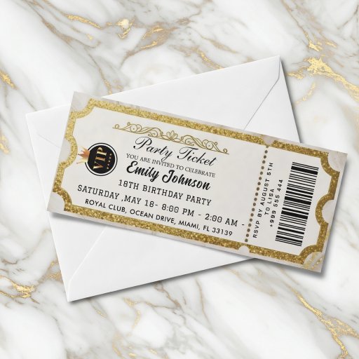 Una invitación de boleto de fiesta es una forma creativa y elegante de invitar a personas a una ocasión especial, diseñada para parecerse a un boleto de entrada para un concierto, película u otro evento divertido. Este tipo de invitación incluye toda la información importante sobre la fiesta, al mismo tiempo que agrega un toque divertido y temático que hace que los invitados se sientan emocionados e interesados. Combina la practicidad con el entretenimiento, haciendo que la invitación en sí misma sea parte de la celebración. A continuación, se presentan algunas de las características y elementos principales de una invitación de boleto de fiesta.