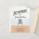 Esta postal le invita a disfrutar de la tranquila belleza del retiro. En un entorno de arena y aguas turbias, se espera una silla solitaria de playa, que ofrece un momento de serenidad. Con tonos naranjas y azules que recuerdan a una puesta de sol costera, esta postal marca la pauta para una celebración de relajación y nuevos comienzos.