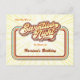 El Seventies Night Postcard Invitation presenta una tipografía de estilo vintage de "Setenties Night". Estos diseños incluyen elementos de azul, naranja, amarillo y marrón, rayas, fondo de estrella y diseños inspirados en los años 70. El producto incluye una plantilla para la personalización personal.