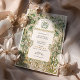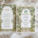 Esta invitación a la Unión de Amor Art Nouveau capta la esencia de la delicadeza romántica con su armoniosa fusión de tonos ciruela y lila, animada por toques de color rosa y verde sucio. Inspirándose en los elegantes y curvilíneos diseños de la época Art Nouveau, el frente presenta una lujosa exposición de flores florecientes entrelazadas con hojas lujosas, envueltas en un distintivo esquema dorado rosa. En la parte trasera se muestra un delicado monograma, enmarcado artistalmente por las icónicas curvas de latigazos simbólicas de este período artístico, todo enmarcado en un fondo blanco prístino. Esta suite de invitaciones es el preludio perfecto para un boda lleno de encanto vintage y gracia intemporal.
