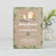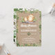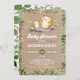 Extraordinaria invitación a la ducha de bebé con ilustracion de verdes acuarelas rústicas, follajes y una adorable lechuza y su bebé