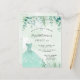 Una invitación a la moda para una fiesta de dulces 16, 16 años, tema del bosque encantado. Un fondo de color verde acuático con helechos y eucaliptos, un vestido verde. El nombre está escrito con una escritura de estilo con letras a mano moderna. Personalice y agregue los detalles de su fiesta. Sugerencia: Si no desea que se vea como una postal, haga clic en personalizar, vaya a la parte posterior y quite el separador y el sello postal.