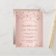 Una invitación moderna, elegante y glamurosa para una fiesta de chica de 16 años. Un fondo dorado rosa con estrellas de oro rosa. El nombre está escrito con un guión moderno de estilo con letras de color rosa oscuro y dorado. Plantillas para los detalles del fiesta. Fondo de oro rosa. Sugerencia: Si no desea que se vea como una postal, haga clic en personalizar, vaya a la parte posterior y quite el separador y el sello postal.