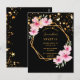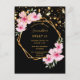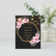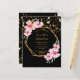 Floral tropical, bajo las estrellas Sweet 16, 16th cumpleaños invitación a la fiesta con flores de hibisco rosa, vegetación y un marco geométrico de oro falso y estrellas doradas. Elegante fondo negro. Plantillas para un nombre escrito con un script de estilo moderno con letras a mano, plantillas para la información del fiesta. Texto negro. ¡Ideal para celebrar el verano, la piscina o la playa! Atrás: fondo negro y estrellas doradas. Esta tarjeta también está disponible en nuestra tienda sin color de fondo. Sugerencia: Si no desea que se vea como una postal, haga clic en personalizar, vaya a la parte posterior y quite el separador y el sello postal.