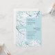 Estas invitaciones nupciales de 5" x 7" presentan un diseño de hojas abstractas en tonos turquesa, acuático y gris polvoriento con marcadores de posición, "Te invitamos a celebrar al boda de", el novio y la novia primero y apellidos, fecha, hora, nombre de ubicación y dirección del boda, "recepción a seguir".