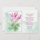 Una encantadora invitación con una planta de ciclamen rosa en flor. Un diseño abstracto de espuma marina hace un bello telón de fondo.