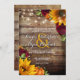Rosas de la Calabaza del Otoño Rústica Iluminan la Invitación con girasoles amarillos, calabazas, rosas de borgoña y aliento del bebé. Un fondo rústico de madera con luces de hadas brillantes sobre el techo y un diseño cursivo del corazón. Genial para ese país de otoño o boda de granero. Productos a juego disponibles.