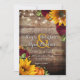 Rosa de Calabaza de Otoño Rústico Iluminación de Madera con girasoles amarillos, calabazas y rosas de borgoña y aliento del bebé. Un fondo rústico de madera con luces de hadas brillantes sobre el techo y un diseño cursivo del corazón. Genial para ese país de otoño o boda de granero. Productos a juego disponibles.