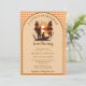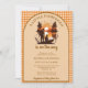 Designed in warm tones of burnt orange, soft tan, and rich brown, this baby shower invite is accented with a charming gingham border that adds a vintage, country-inspired touch. The peaceful lake scene, silhouetted trees, and glowing sunset make this invitation ideal for rustic, fishing, outdoorsy, cabin, lake house, woodland, or fall baby shower themes.