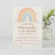 Celebrate your special moment with this adorable pastel rainbow gender reveal invitation featuring the phrase “A Little Miracle Is On The Way.” Designed in soft watercolor tones with blush, blue, peach, and gold accents, this invite brings a sweet, modern, and whimsical touch to your celebration.